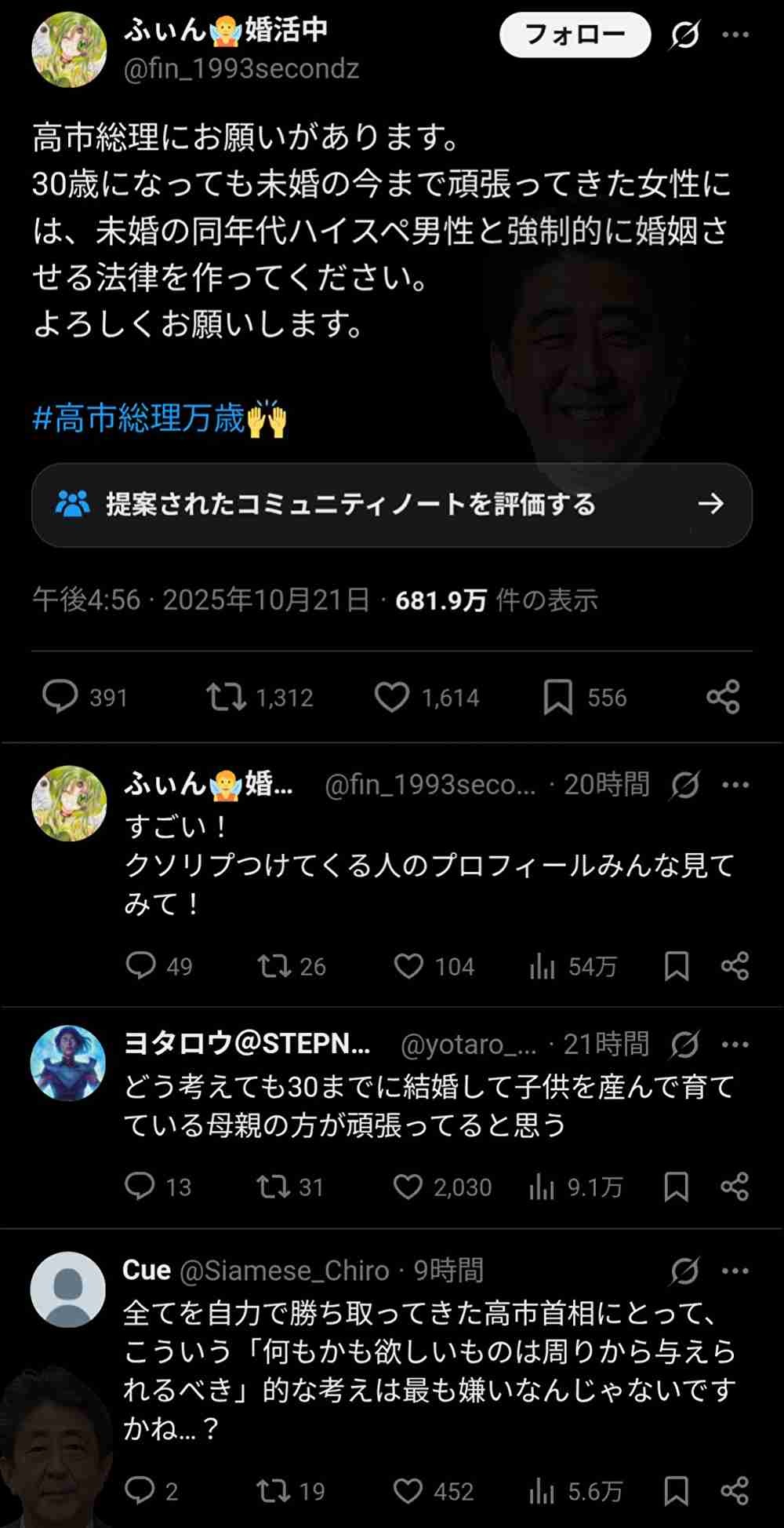 【正論】婚活まんさん「未婚で頑張ってきた女性はハイスペ男と強制結婚させる法律を高市総理作って!」