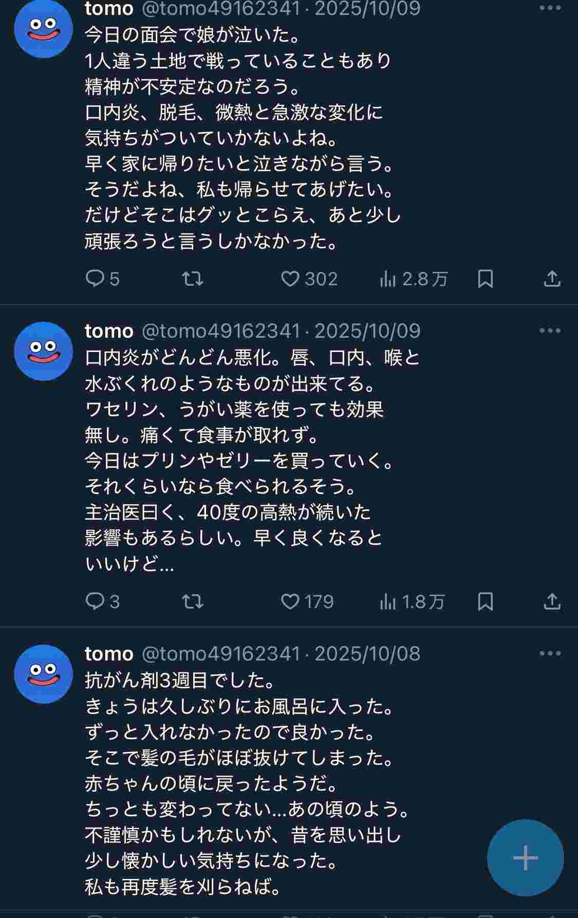 闘病のこと自体を書くことは否定しないけど娘のプライベートのことは敢えて触れないとかそういう分別がついていないところが、なんか引っかかるよなぁ