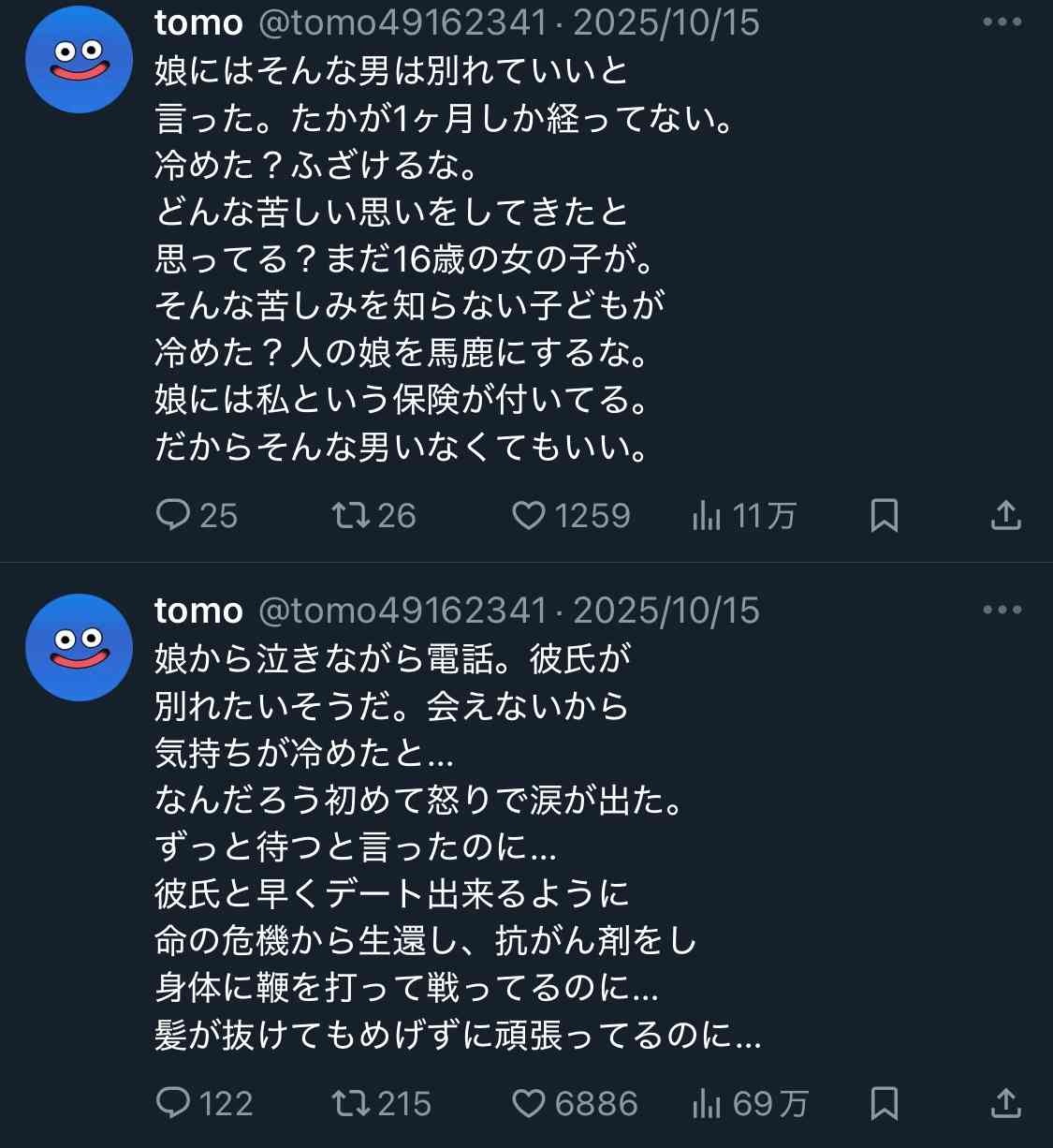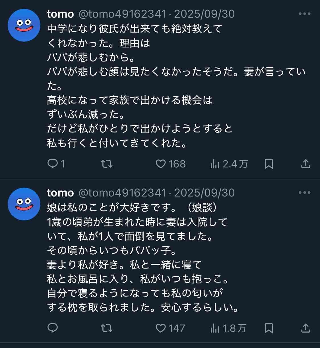 女の彼氏の話をネットで全世界に向け勝手にペラペラ喋ってる時点で父親の行動としておかしい