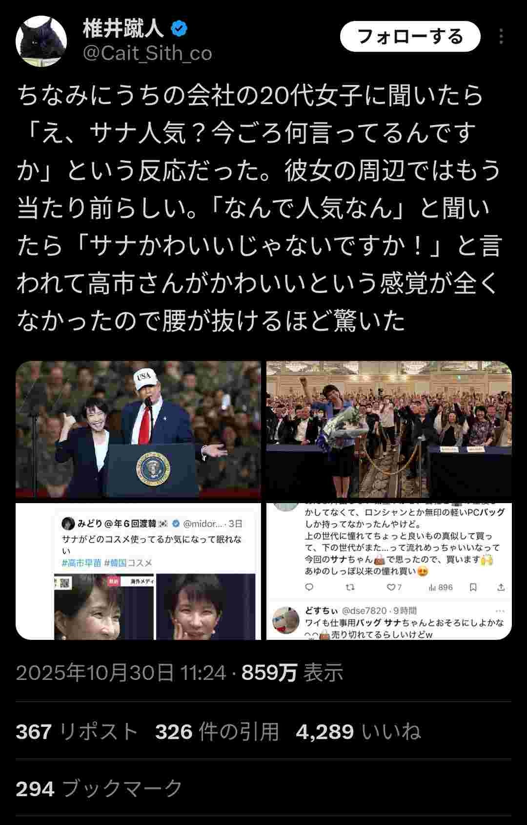 高市早苗が若い子にサナって呼ばれて人気とかいう話、ケンモジサンはマジでそんな感覚ないんやろな