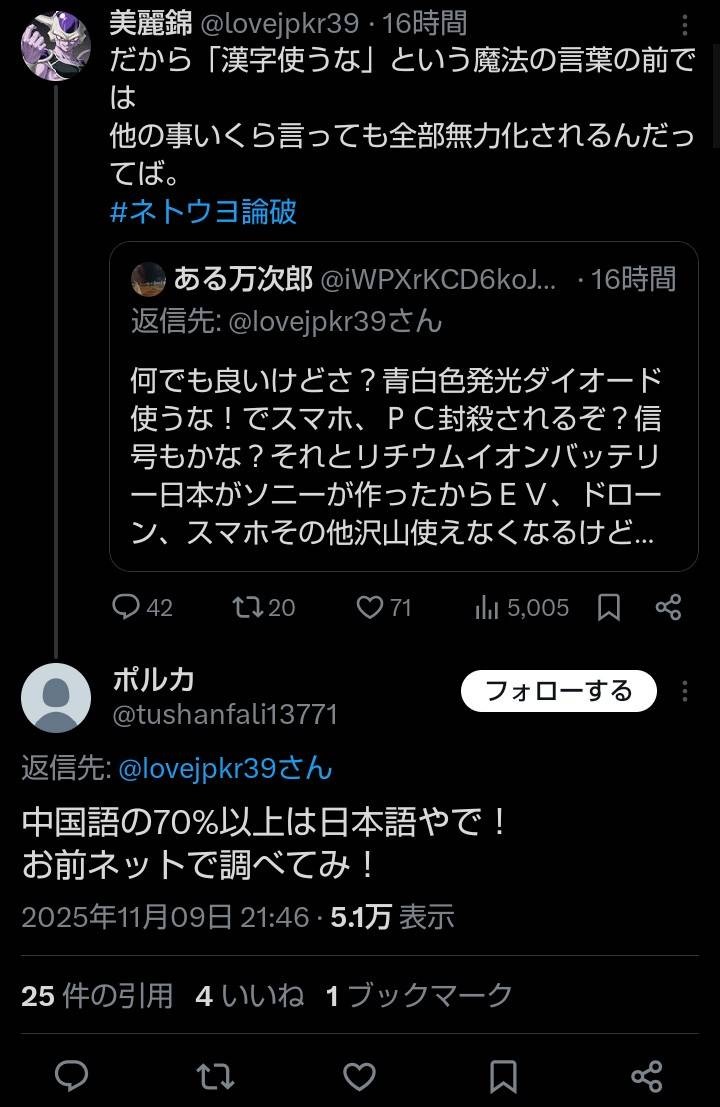 日本語から借用したら日本語になるなら中国語から借用したら日本語は全部中国語になるやんけ