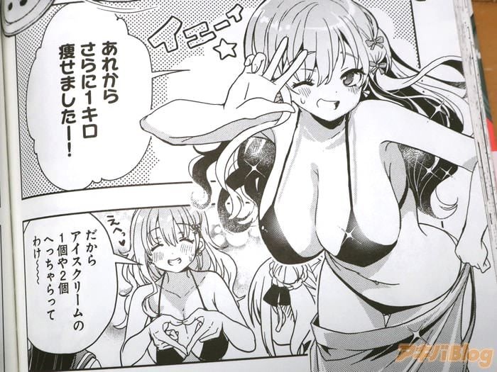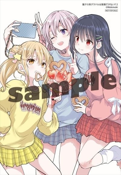 「飯テロ系グラドルは我慢できない!?」は3人組のグラビアアイドルユニット、スリーピースとして活躍する英子、静、満月を描くコメディ。3人は美味しいものを食べることが大好きで、人気は絶好調だが、体重・体脂肪率も右肩上がりだった。事務所の社長に痩せられなければクビだと宣告された彼女たちは、力を合わせながらダイエットという困難に立ち向かう。同作は月刊コミックキューン(KADOKAWA)で連載中。2巻ではスリーピースの3人が共同生活を始めるなど、新たな展開がスタートする。