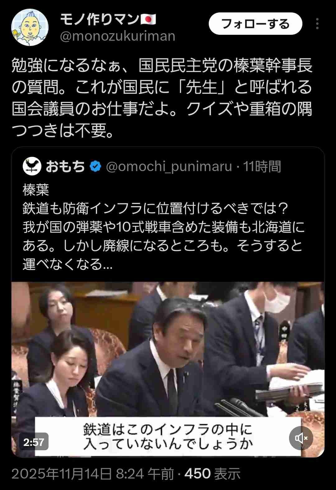 榛葉の国会質疑のショート流れてきたけどマジで質問じゃなくて自民党の太鼓持ちやってた