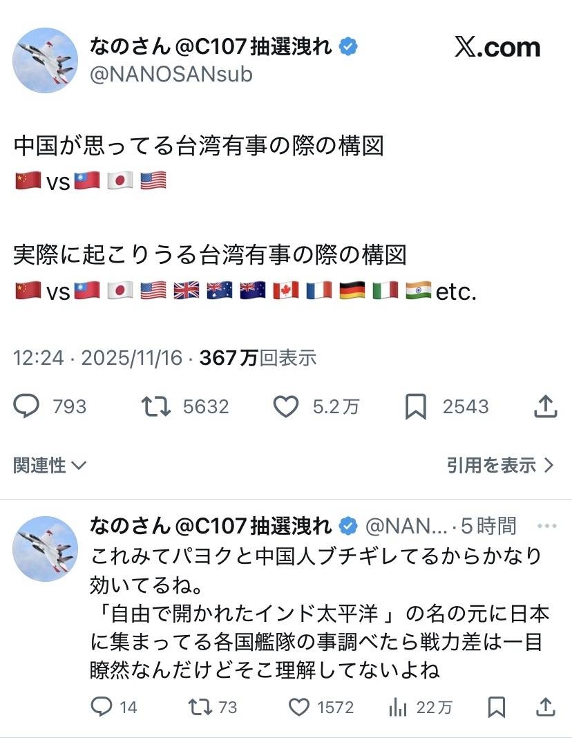高市さんが軽く小突いただけでこんなに慌てふためいて癇癪起こした中国の器量が知れるわ