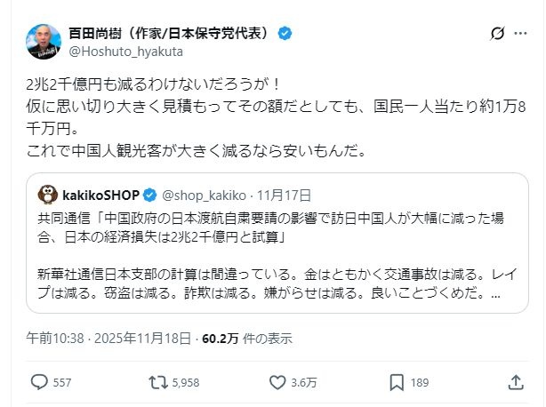 中国人観光客がいなくなった損失がそんなに安いと言うなら