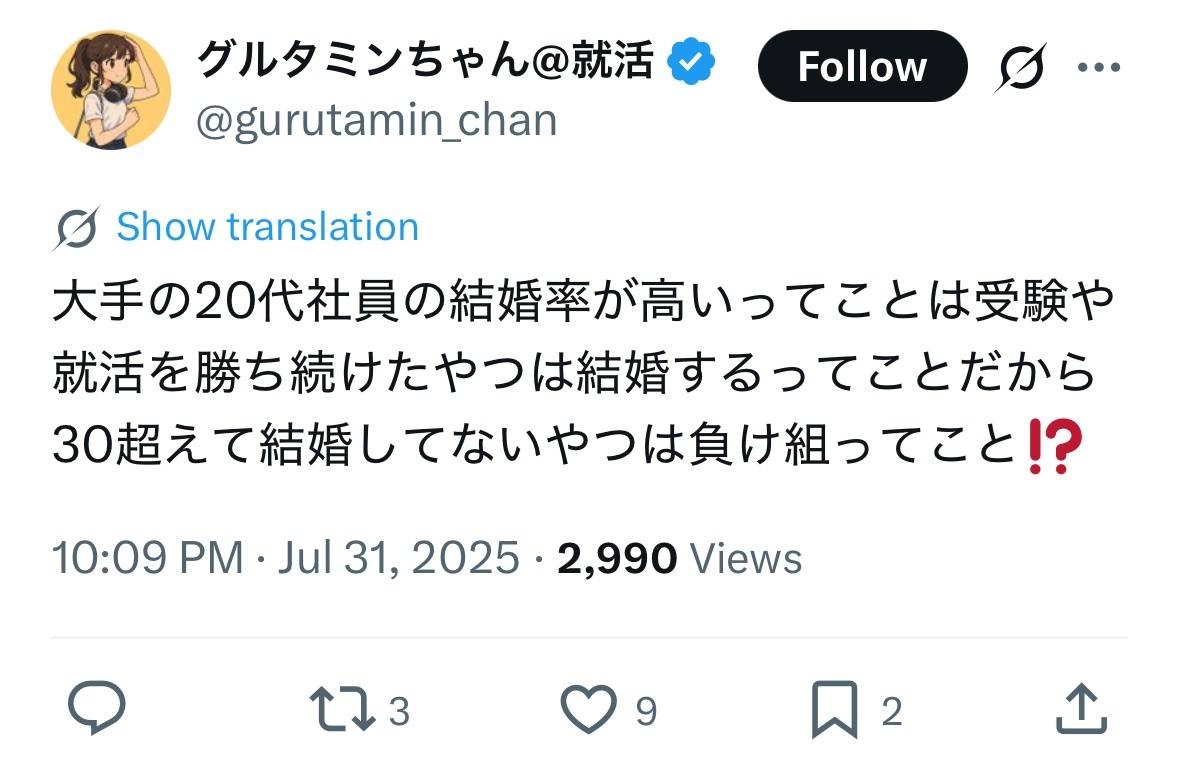 まあリアルやと男女問わず問題なければ遅くてもアラサーで結婚しとるもんな