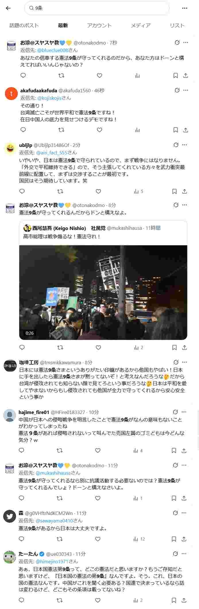 9条の受け取り方が違うから話しても平行線だな