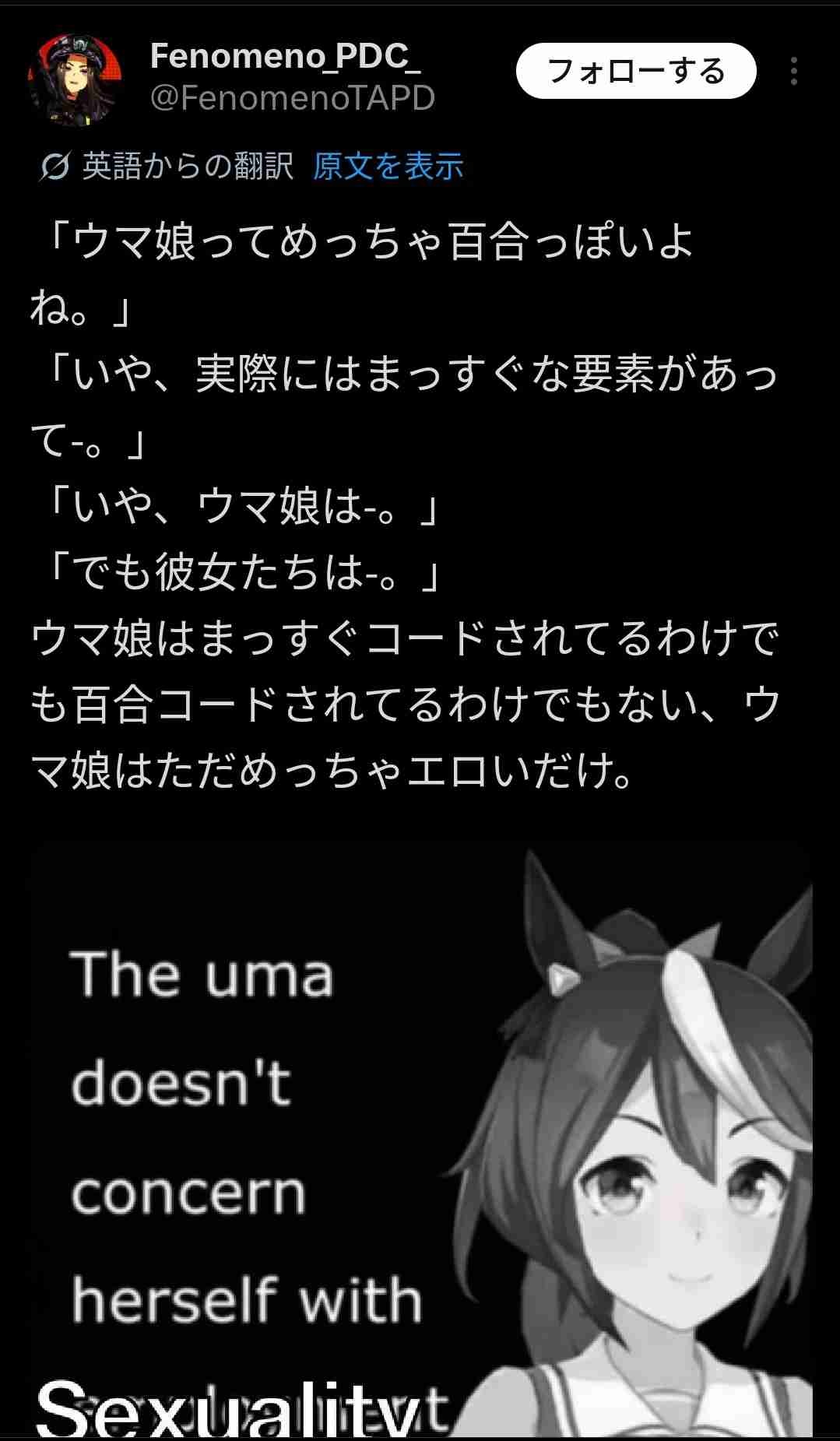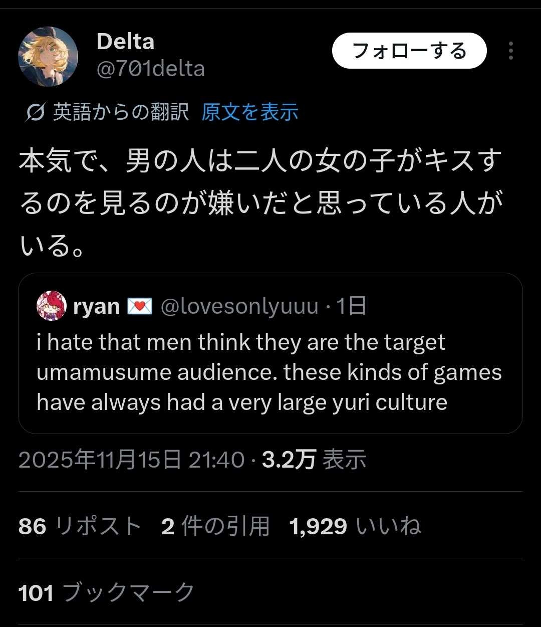 ウマ娘は男向けだけど、元来百合というのは女性向けのジャンルだよ