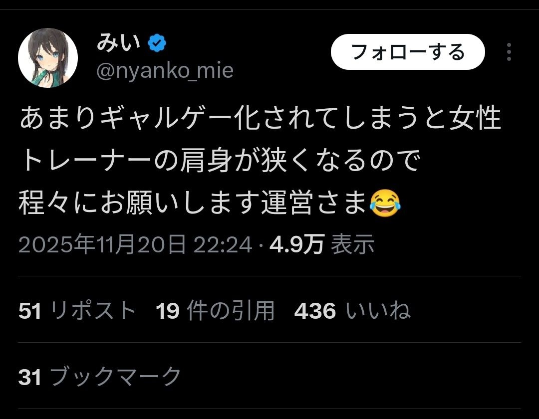ウマ娘って性多様性とは程遠い、弱男向けコンテンツじゃないのか?
