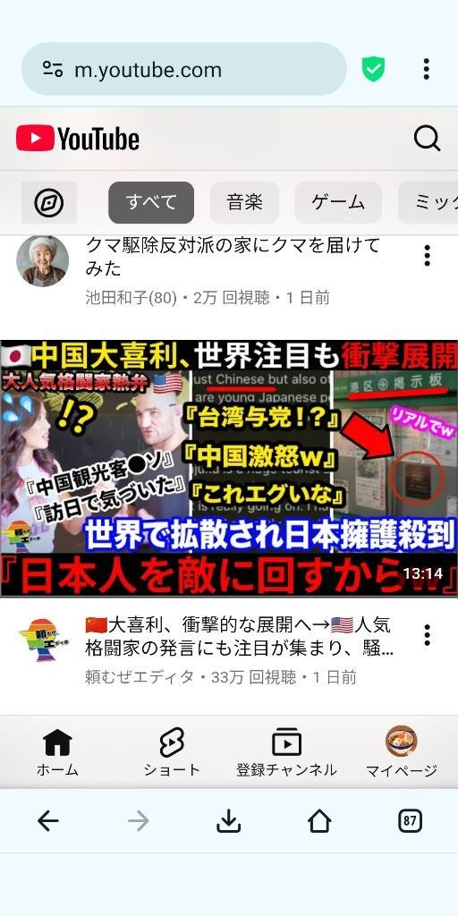 じゅんちゃんが自分のホームはネトウヨ系おすすめだらけだと笑っていたが、右左関係なく政治的な動画を再生すると、すぐにこれになることがあるのかな