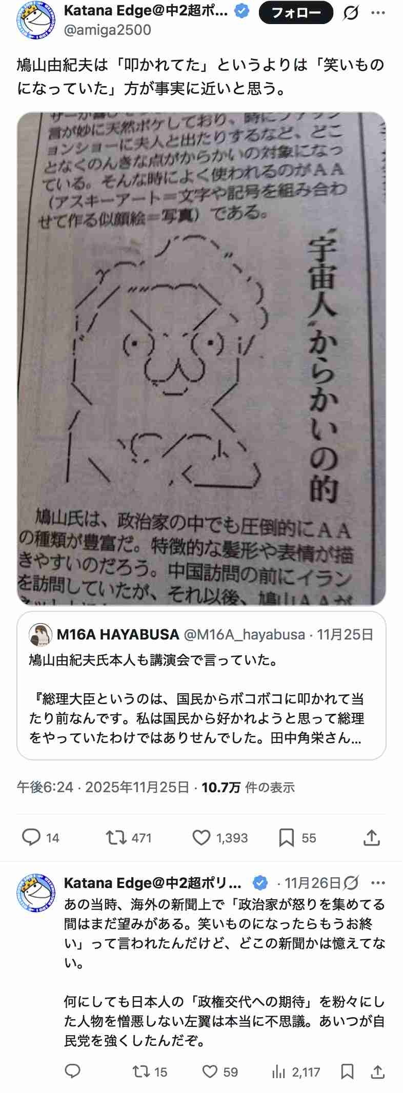 鳩山って反日ネトウヨにはそんなに脅威なのかな