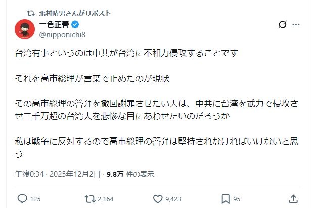 高市発言のせいで中台の台湾有事への関心高まり、不規則発言でアメリカも計画の見直しを迫られ、間違いなく台湾侵攻へ傾かせる発言だっただろう