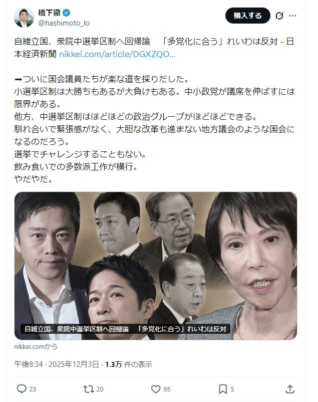 なんで中選挙区に戻したらあきませんの?
