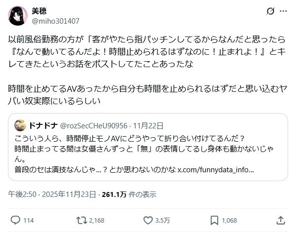 時間止められると本気で信じてる奴が金払って風俗行くわけねえよな