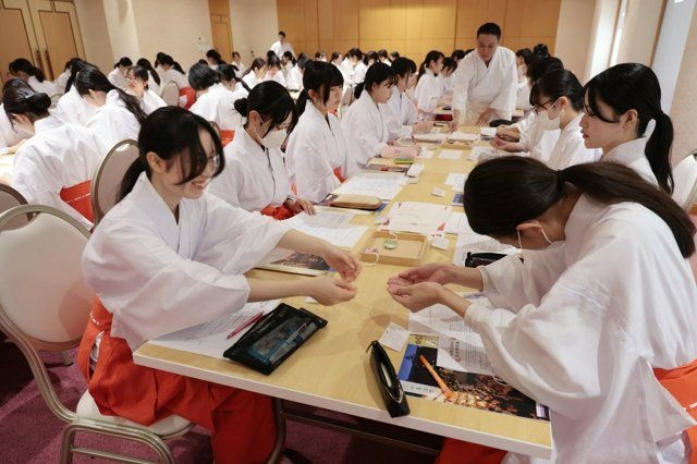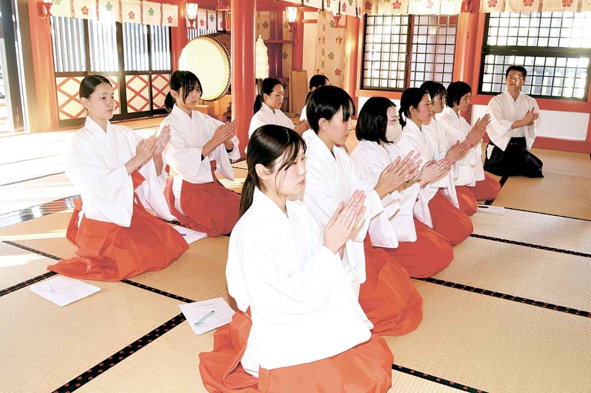 巫女の心得を真剣に学ぶ 松本・深志神社で研修