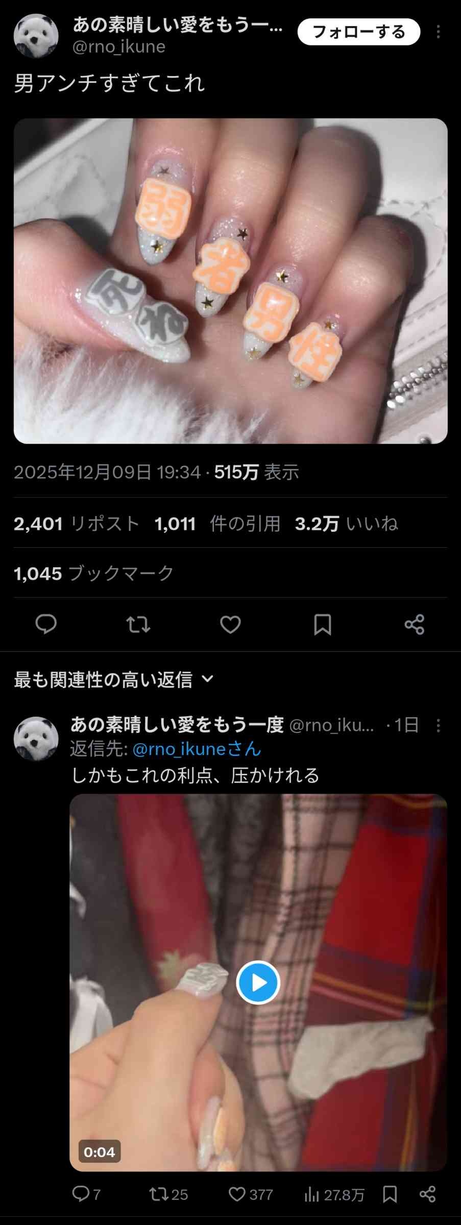 童貞を56す服みたいなネイルがあるのかと思ったら忌み嫌われるだけじゃねえか