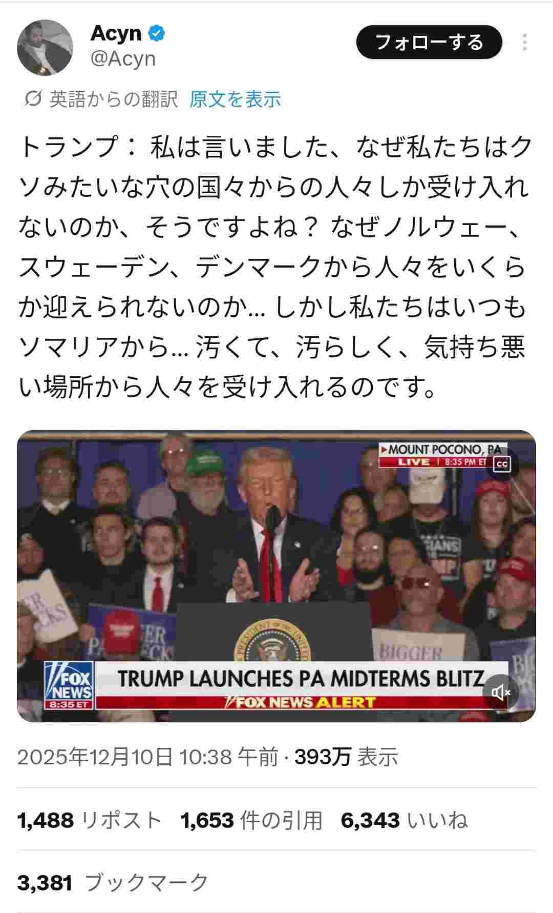 アメリカ大統領がここまで言えるって、レイシストは社会的地位なくなるんじゃなかったのかよ