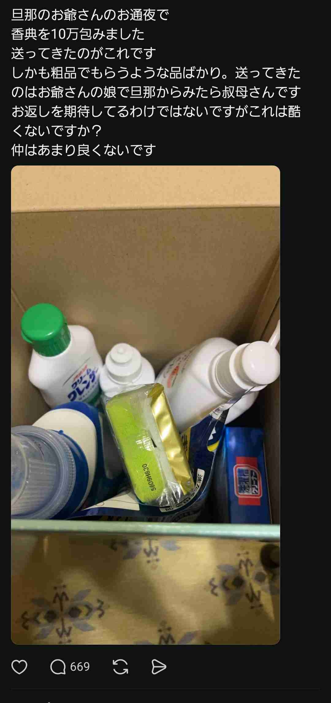 旦那の父親なんだからそんくらい包むだろそりゃ