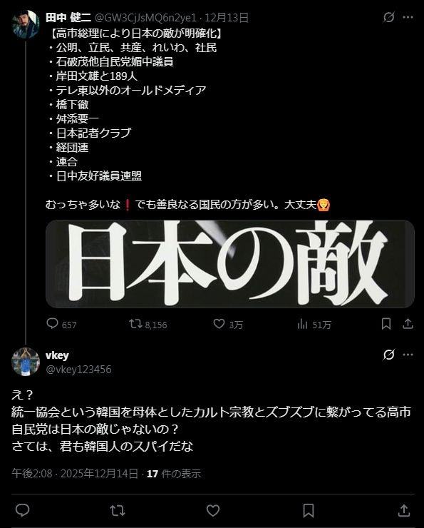 ネトウヨ「高市さんを批判する奴はスパイ!!」