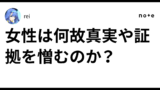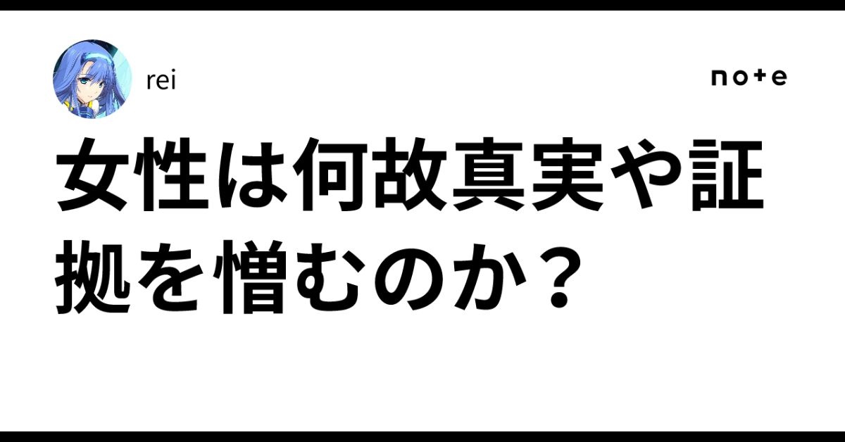 もう頭が痛くなってくる 女性は何故真実や証拠を憎むのか?|reiというタイトルを読んで、恐らく私のnoteの読者でない方の多くは「いやいや流石にそれはない。男性が論理的で女性が感情的だと言う話は聞いたことあるけど、証拠や真実を憎むというのは言い過ぎではないか?」と思うことだろう。或いは「それこそ女性が証...note.com