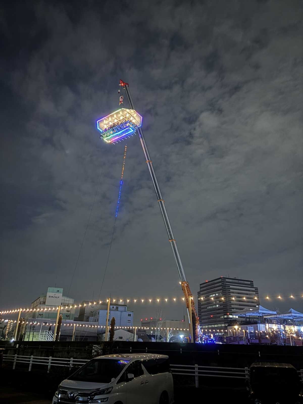 クレーンのフックの部分ライトアップしてるのちょっと笑える