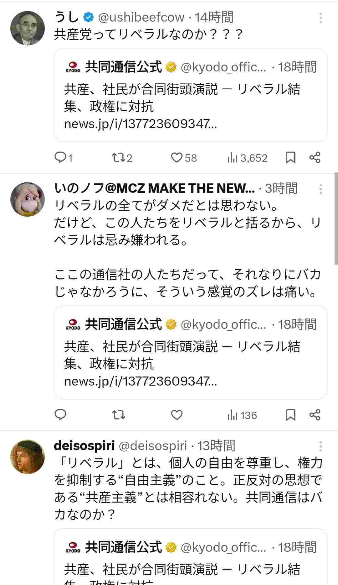 昭和の頃まで共産主義者は、リベラルの事をプチブルと同義で攻撃してたのに随分都合いいな