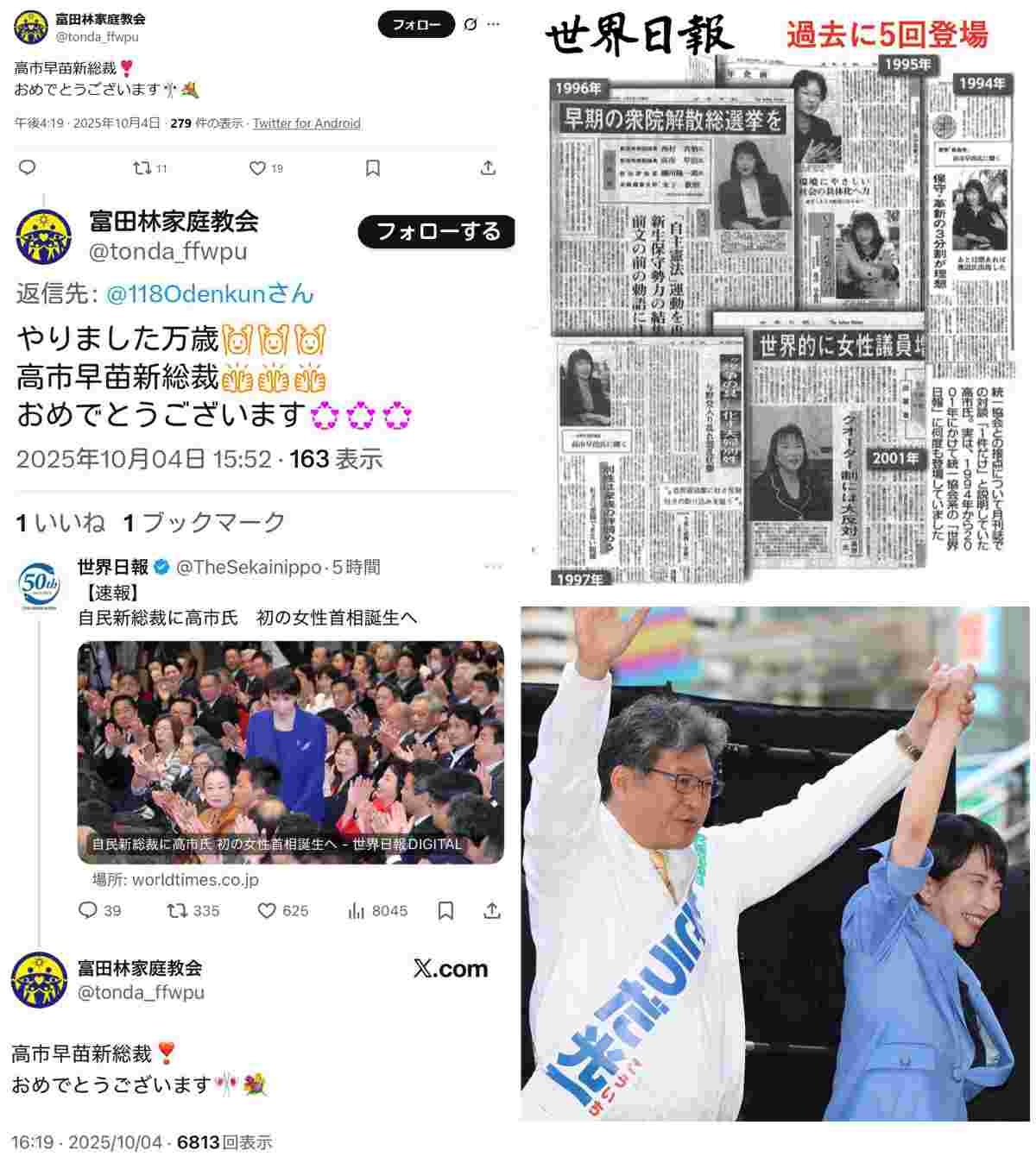 世界日報(統一教会)に写ってるし