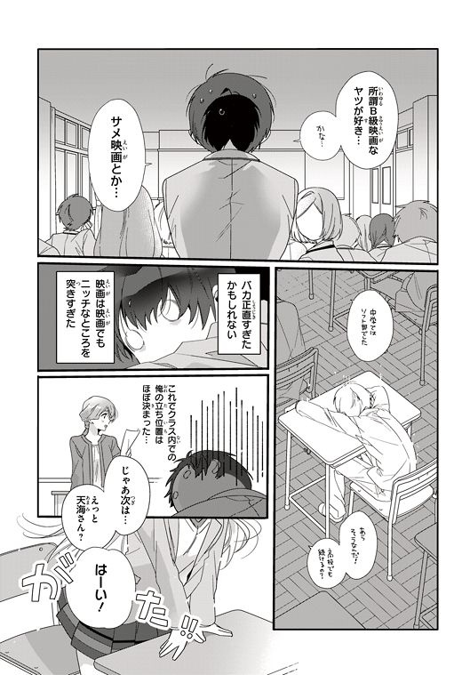主人公・前原のクラスで、男子たちに“1番かわいい”と言われている天海さんと、同じく“2番目にかわいい”朝凪さん。いつも輪の中心にいる2人を、ぼっちな前原は遠巻きに眺めていた。そんなある日、朝凪さんが「友達になってくれない?」と前原に話しかけてくる。朝凪さんは実はインドア派で、前原と「B級映画好き」「ゲーム好き」という共通点があり、同じ趣味の友達がほしいと考えていた。こうして2人は、クラスのみんなには内緒で、金曜日の放課後に前原の家で遊ぶようになり……。同名小説のコミカライズで、アライブ+で連載中だ。