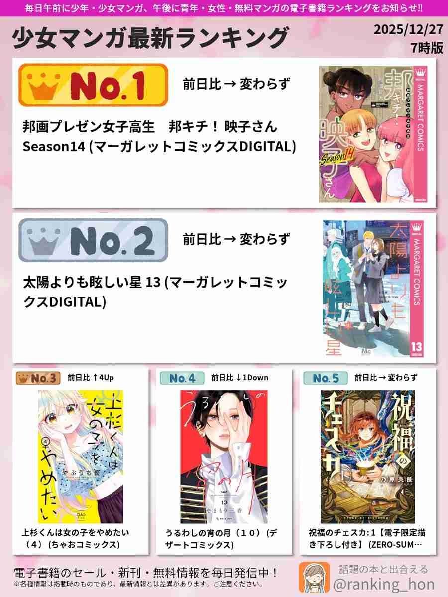 「このマンガがすごい!2026」オンナ編18位に「上杉くんは女の子をやめたい」がランクインしました!??