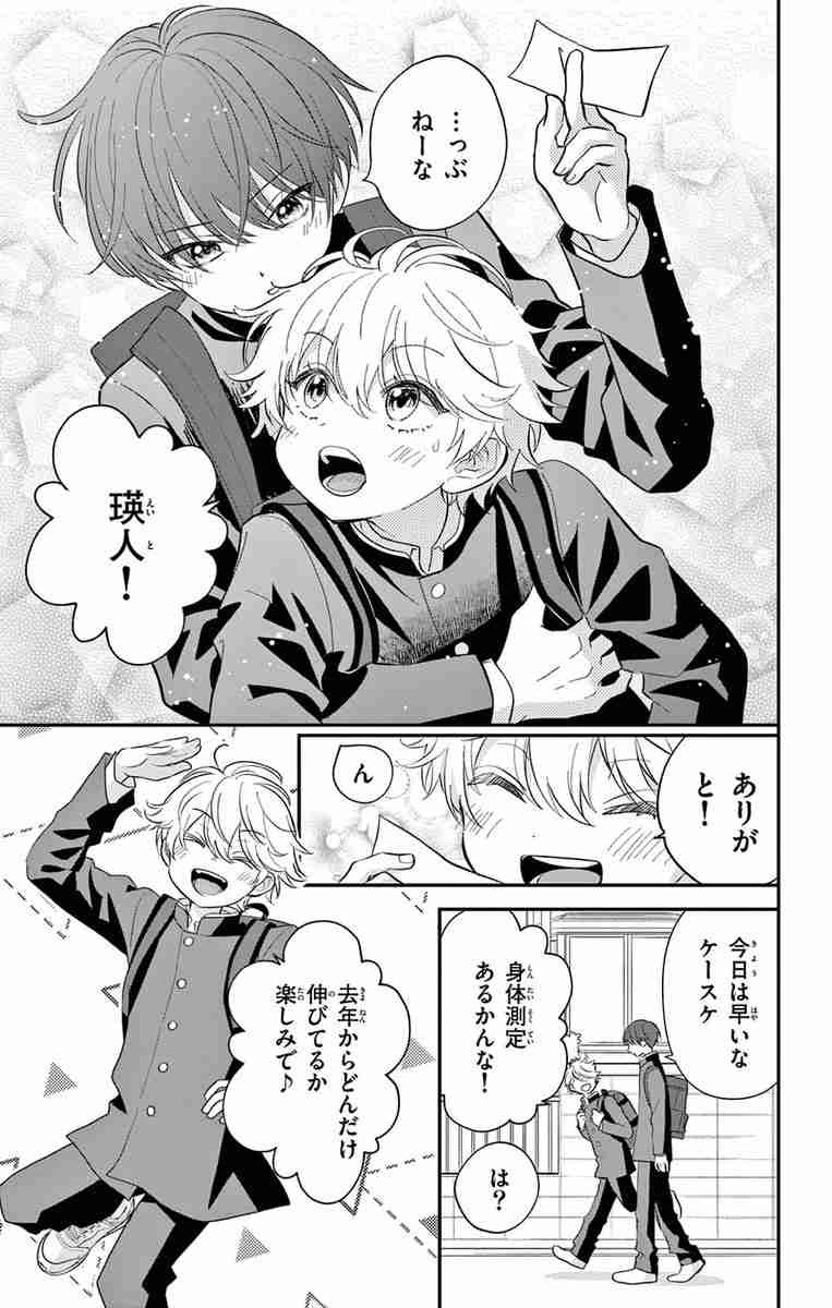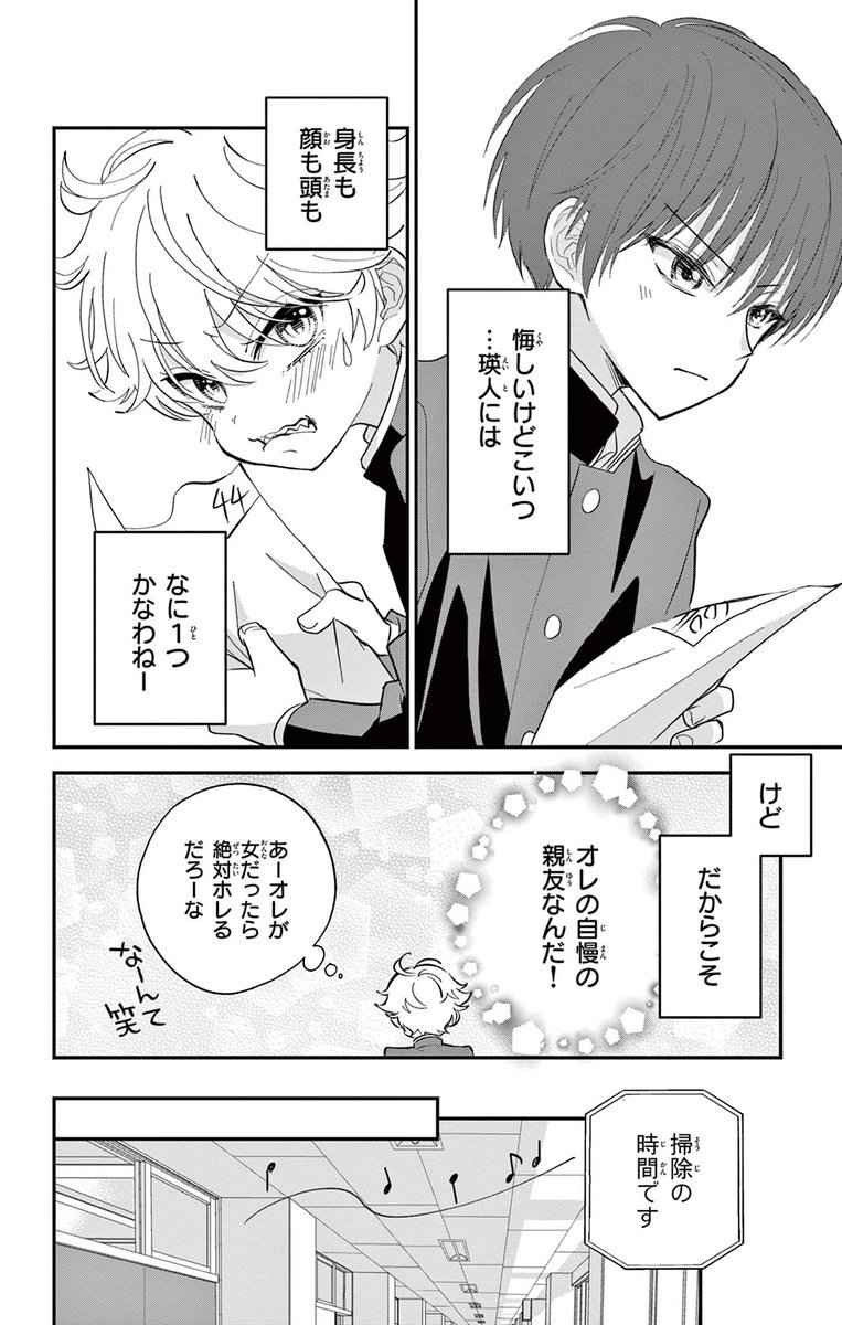 家族全員が“Sサイズ”で、自身も身長が伸びないことに悩む上杉ケースケ。身長も顔も頭も何1つ叶わない幼なじみの瑛人を羨ましく思いながらも、自慢の親友として仲良く過ごしていた。そんなある日、思いを寄せる幼なじみの女子・のえるが、クラスメイトと「上杉が女の子だったらめっちゃかわいくない!?」と話しているのを聞いてしまう。落ち込むケースケはおつかい帰りに寄った神社でとあるお願いをしてみるが……。“女体化ヒーロー”を軸とした三角関係のラブコメディだ。