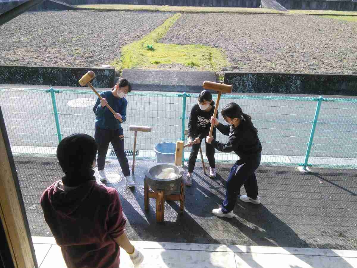 生徒は昔ながらの杵と臼を使い、元気なかけ声とともに20キロのもち米をついていきました。ついた餅は生徒が地域の高齢者144人に届けました。