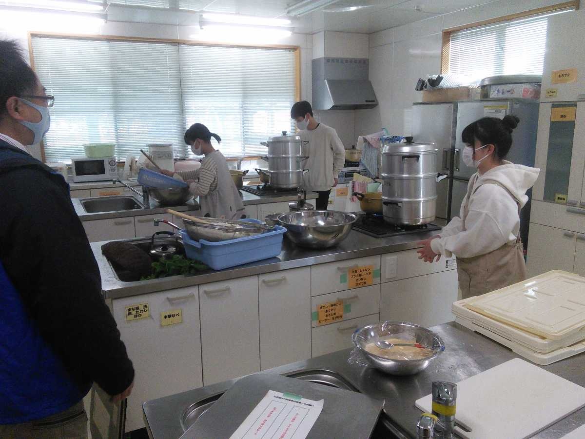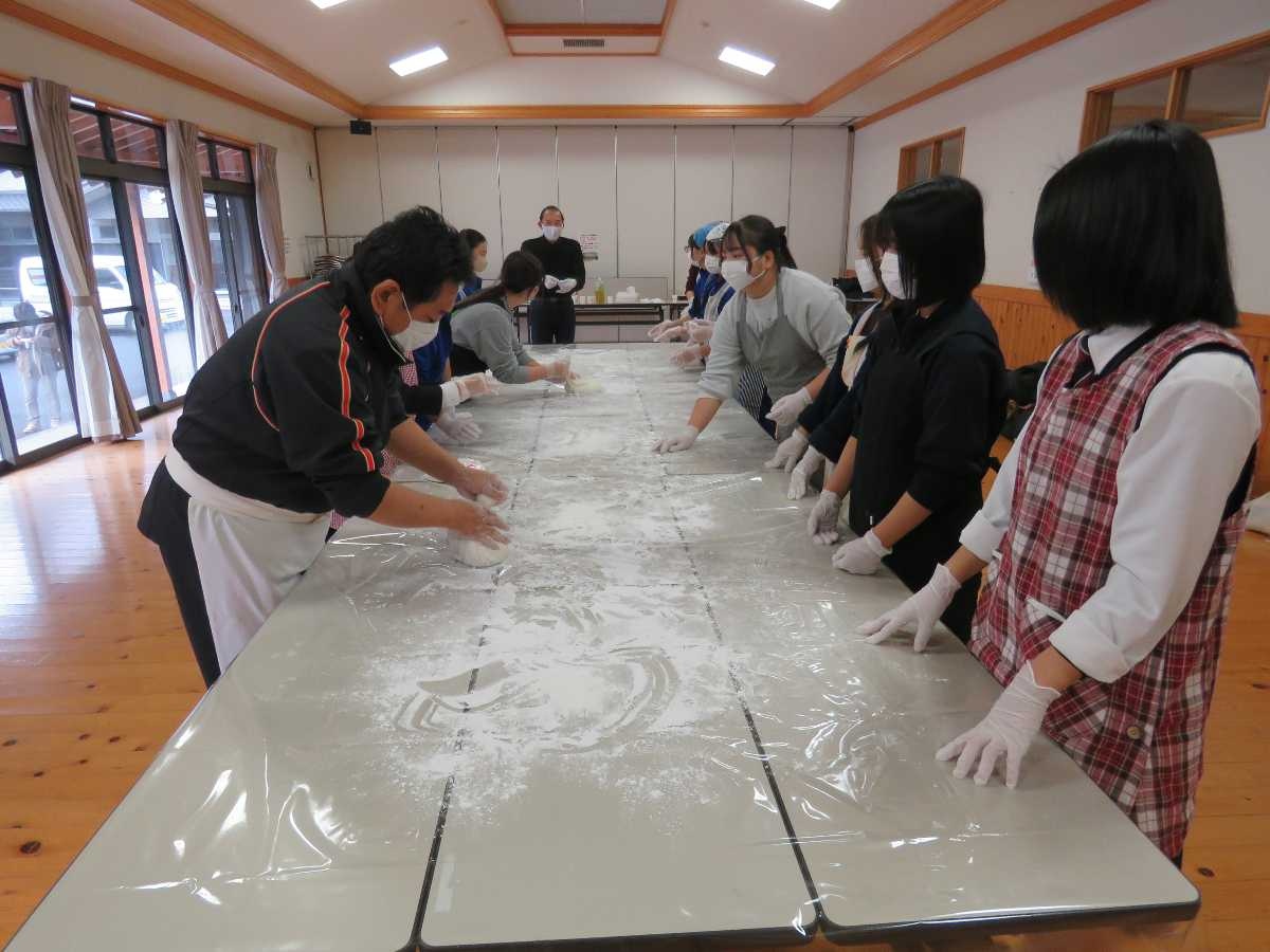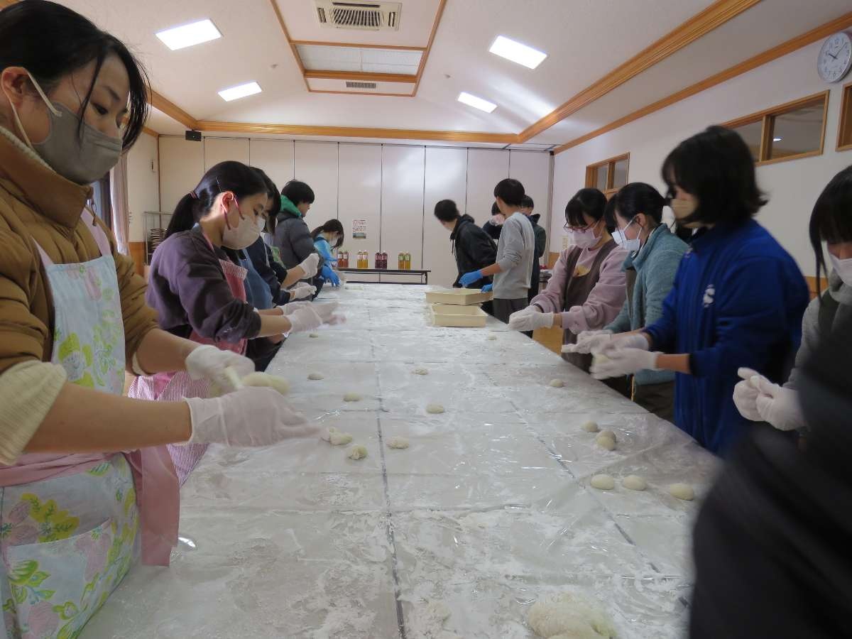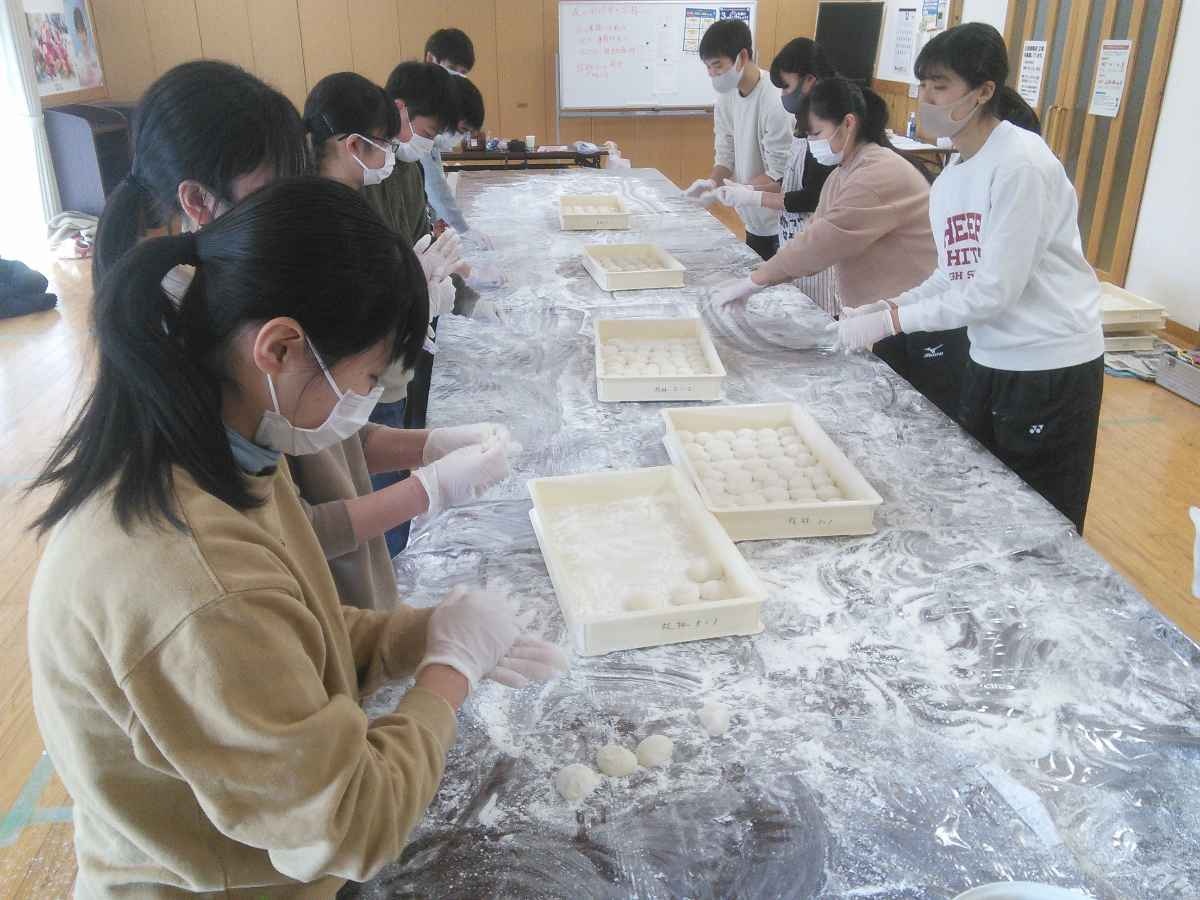 1人暮らしの高齢者たちに届けるため、つきたての餅を丸める高校生たち