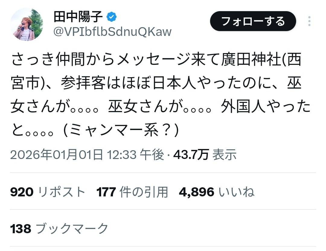 ビルママ●コの方がよっぽど資格あるやろ巫女さんのさ