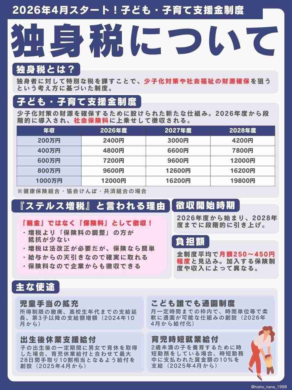 4月、“独身税”がいよいよ開始!子ども・子育て支援金制度「一人あたりの徴収料はいくら?」…「手取りが減った」という実感だけを持つ懸念