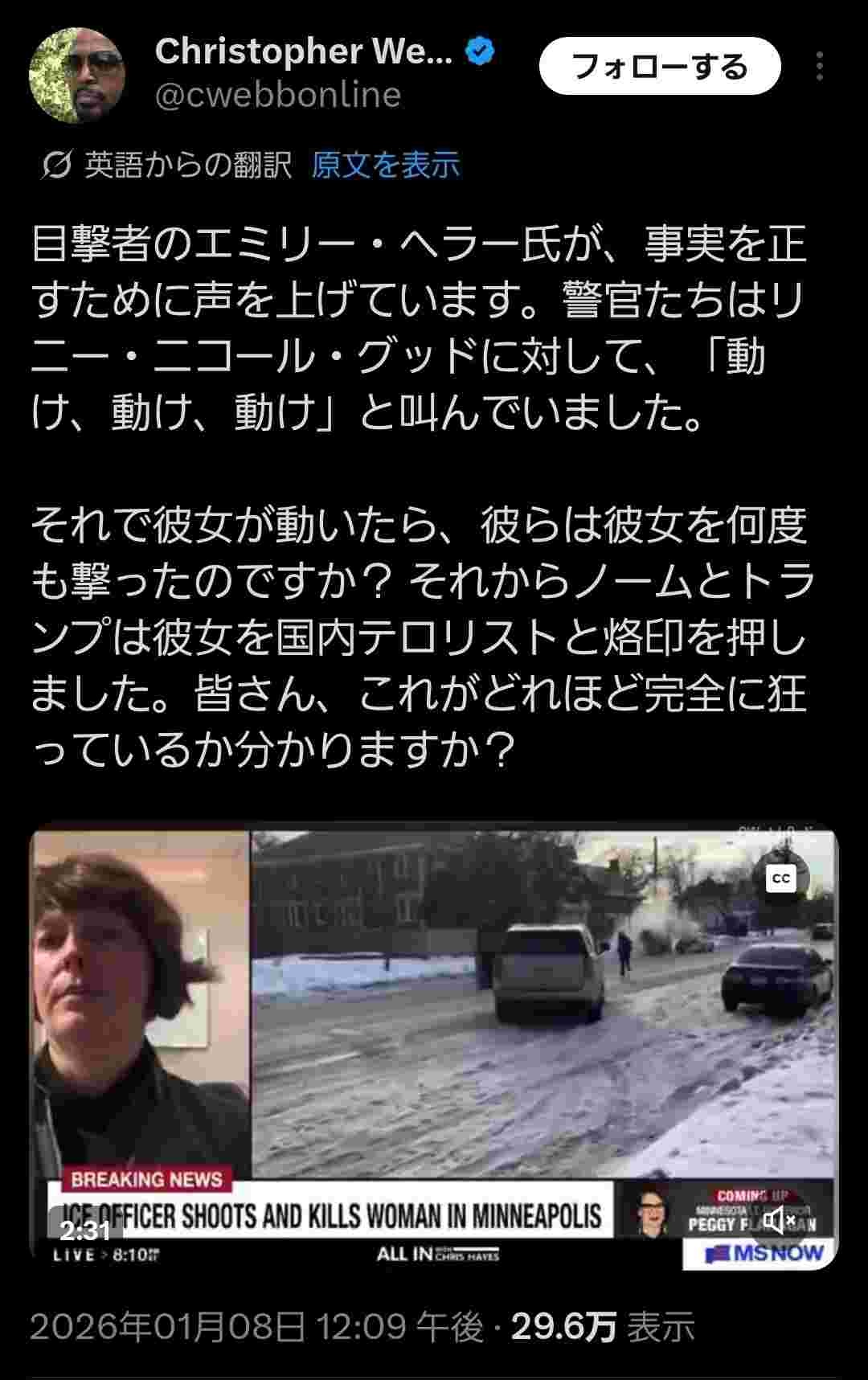【ネトウヨ悲報】女性を射殺したICE、「動け!」と命令したのに動いたら射殺😨これ半分イカれてるだろ