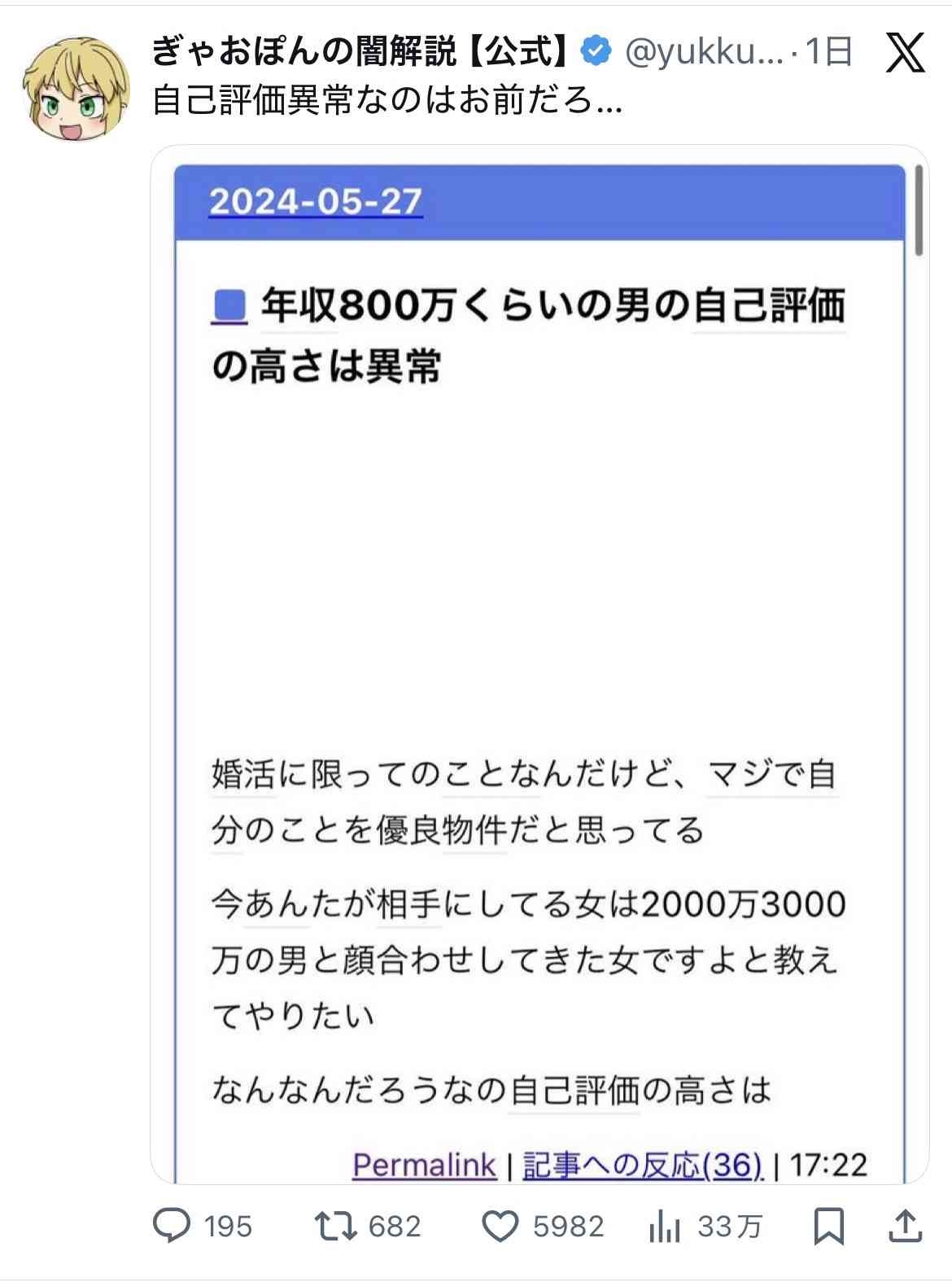 しかもその年収の男には選んでもらえなかったからまだ婚活してんだろ?
