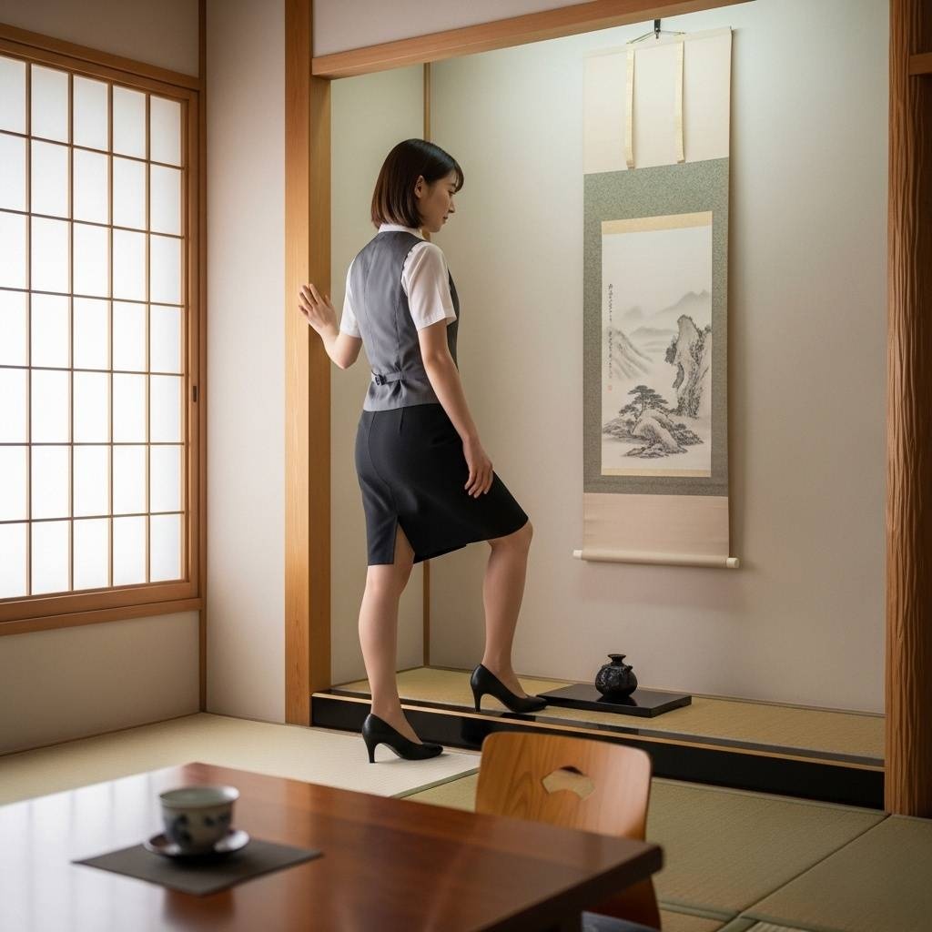 あればぜひ事務服にハイヒールで日本家屋の古民家の畳み部屋に土足させたい