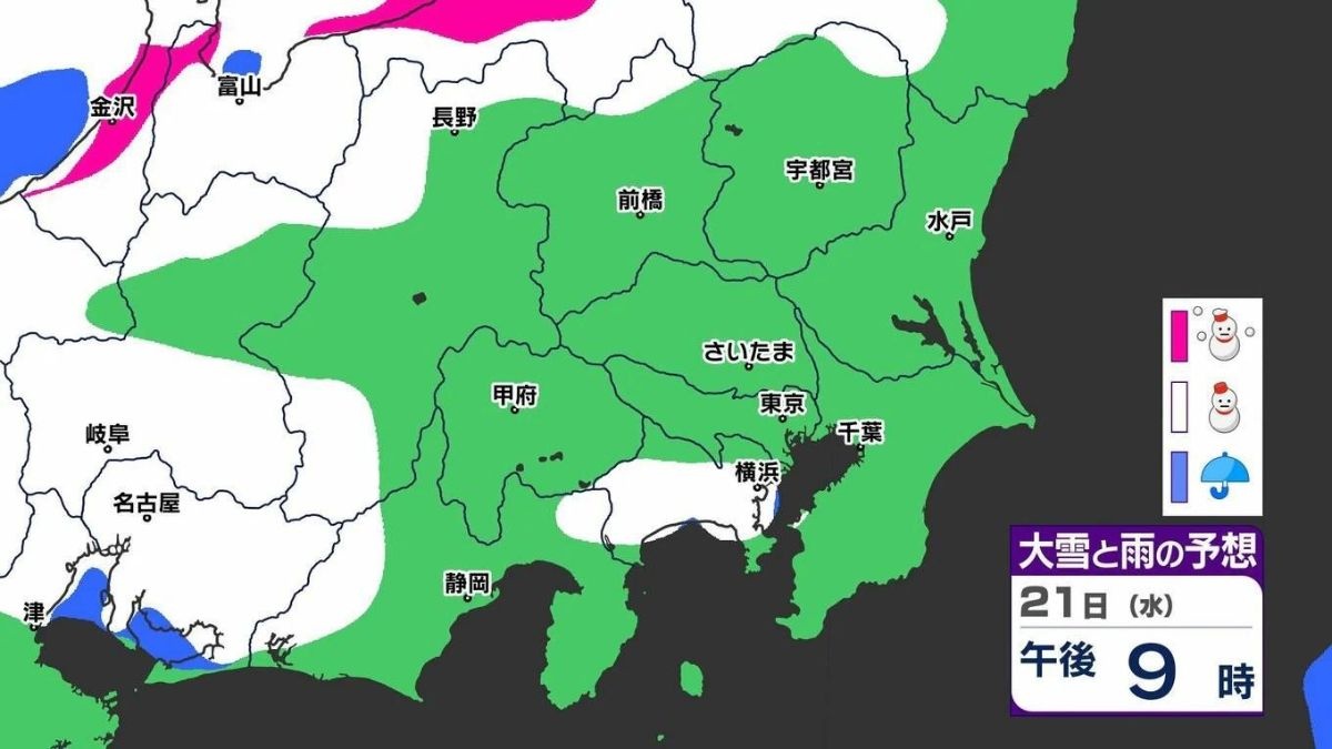 関東地方北部で大雪のおそれ 東京、神奈川、埼玉も一部で雪か【雪シミュレーション20日(火)~25日(日)