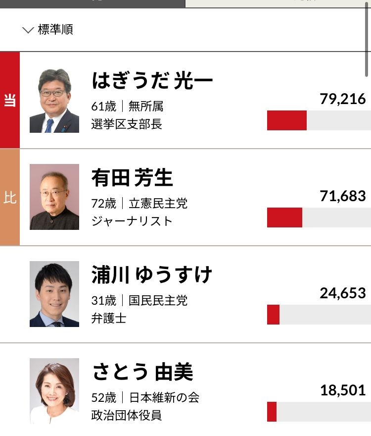 ここは維新の奴が元々民民だった所を前原について維新に行って、民民は民民でまた独自候補を擁立するという、とにかく分裂しまくって萩生田アシストしたからな