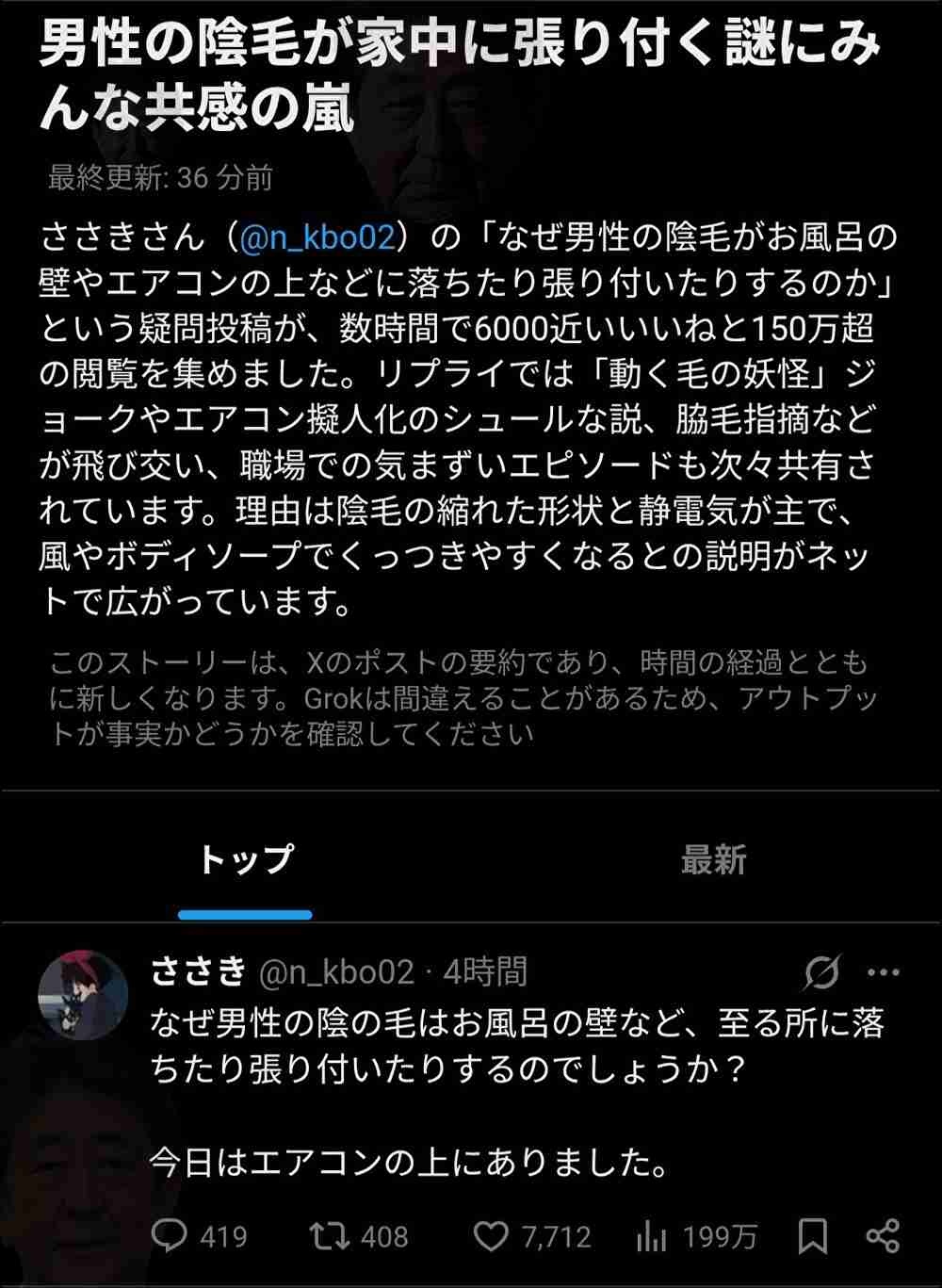 陰毛は風呂場と便所でしか落ちないからな