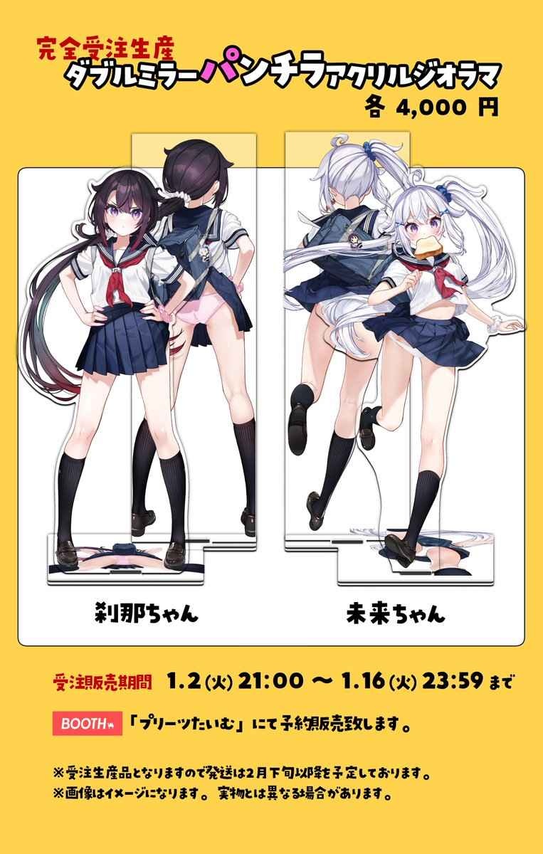 うちの娘たちの進化したダブルミラーパンチラアクリルフィギュア(今考えた)めっちゃいい出来だから見て欲しい…近日販売するよ!