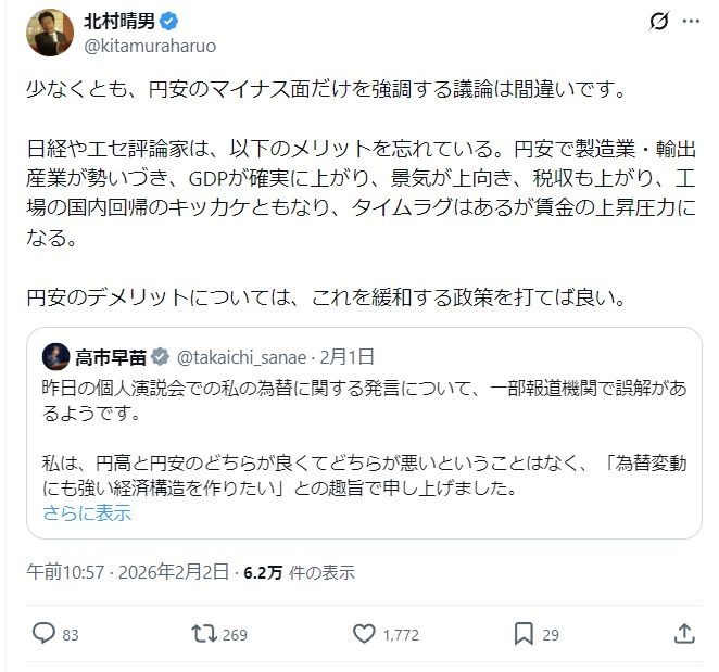 では高市さんが円安ホクホクは正しいともう一度言い直せば良いのでは