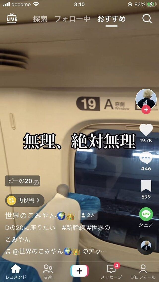 【新幹線】女さん「イヤァーー!指定席で隣の席に男の人座ってる!!ムリ!絶対無理!!」