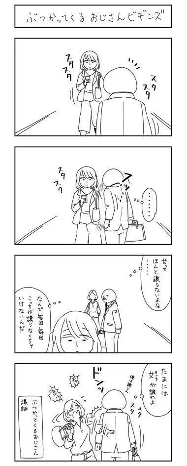 ちょうど今ツイッターで「自分が少し右に避けたら相手も同じ方向に動いたので跳ね返してやった😤」みたいな女さんが燃えてるけど