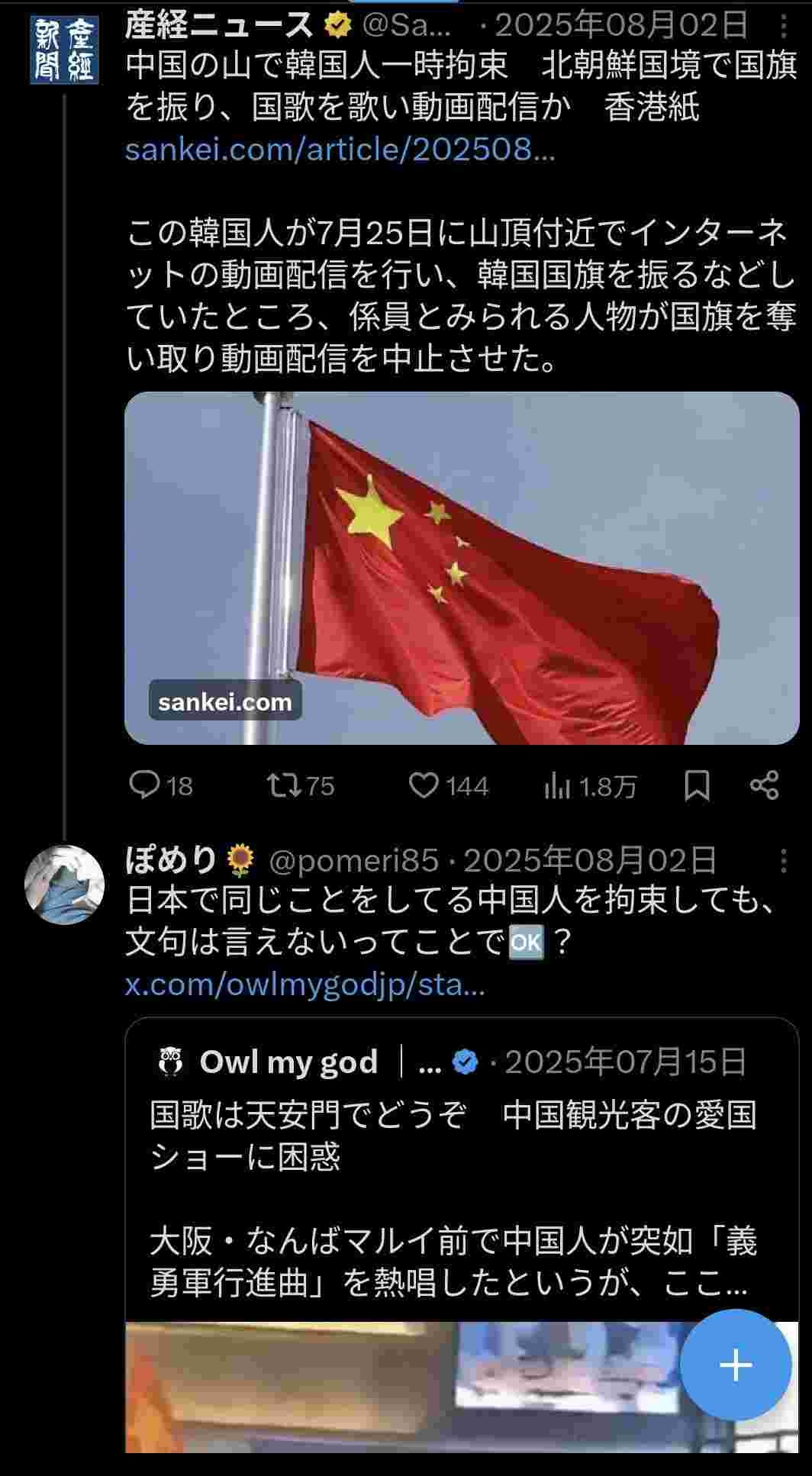 国旗踏む画像あげて垢消し→たぶん自分の別垢でスクショをあげて自演してると思うわ
