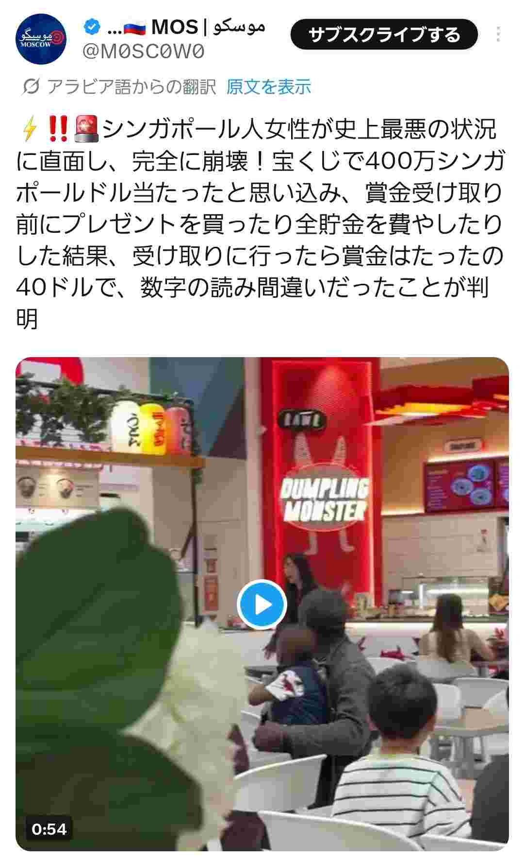今の1シンガポールドルが123.41円だから日本円にしたら4億9364万円貰えると思ったら4,936.4円しか貰えなかった感じ