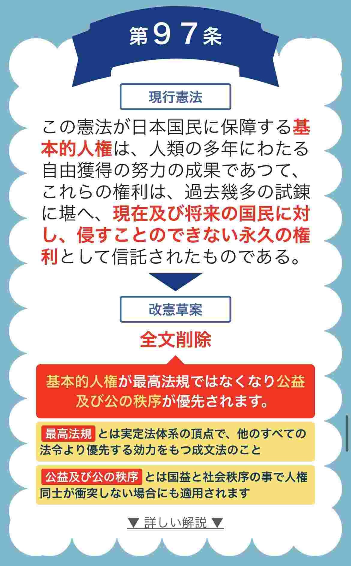基本的人権の削除はさすがのネトウヨ、サナ活女子もドン引きするんじゃないか?と思うけど読まずに通りそうな気がする🙂