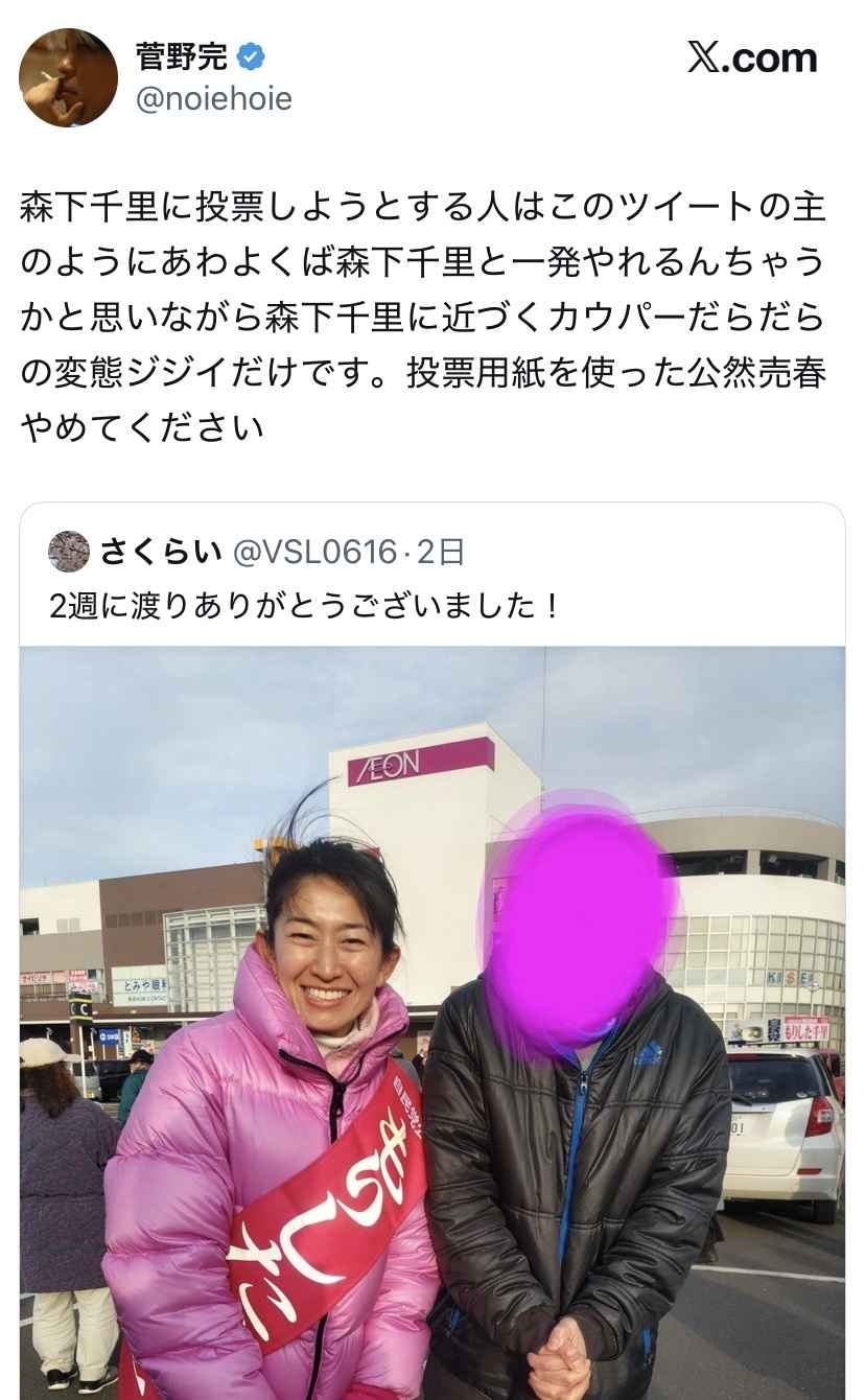 女の候補者が街に立ってたら「公然売春」だって言ってるんだがコレ