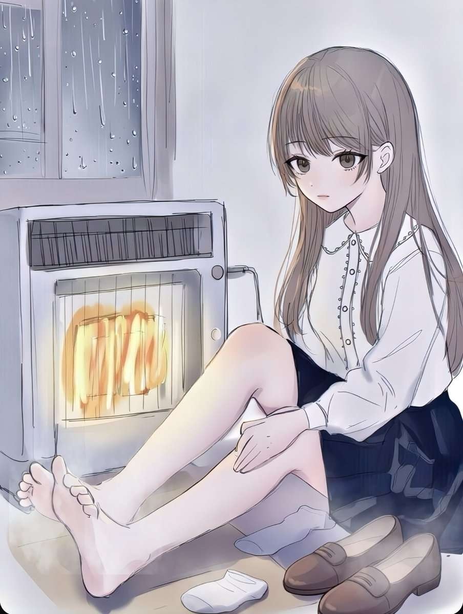 雨で濡れた足と靴下を乾かす