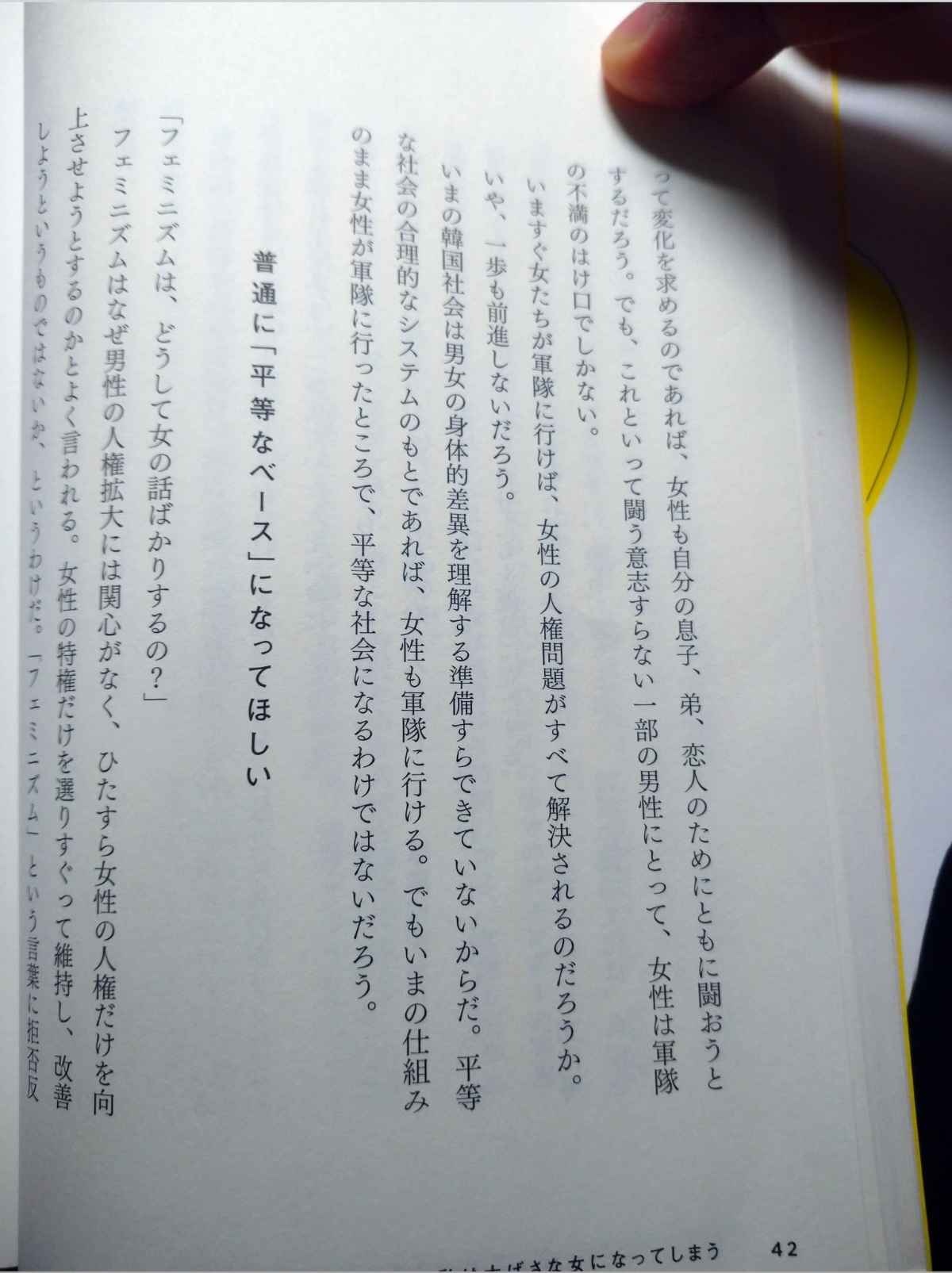 「男は兵役制度を男性差別だと文句つけるけど、女が軍隊に行ったところで女の人権問題は解決しないし、平等な社会になるわけじゃないよね?」